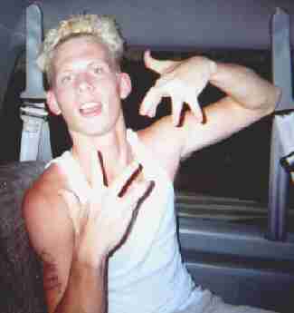 A nice shot of my fro, my white chocolate tatoo, and me acting like a retard. I look different than in that pretty boy picture from a year or two ago, don't I? (by the way, I'm a headbanger.. I don't really act like that)